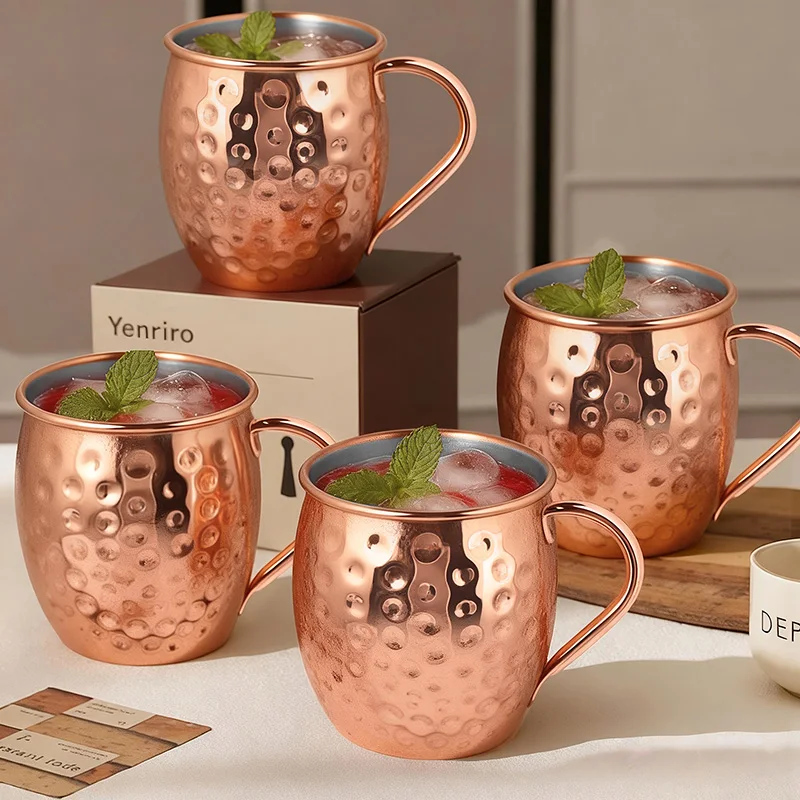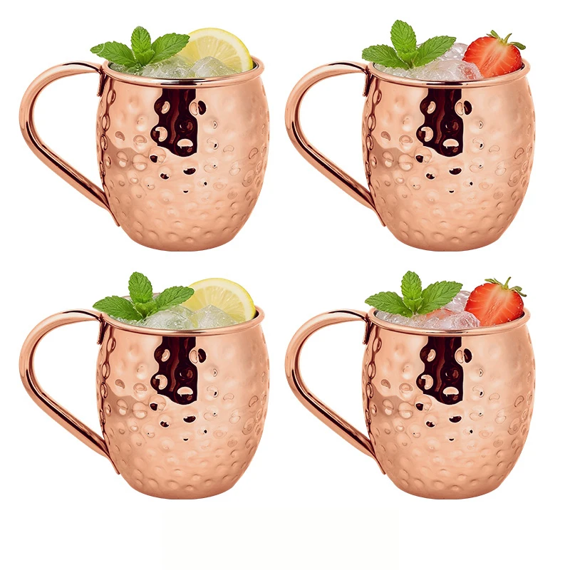 Elegant Moscow Mule Stainless Steel Mugs - Perfect Copper Plated Hammered Cups for Cocktails, Beer, and Wine at Your Next Party!